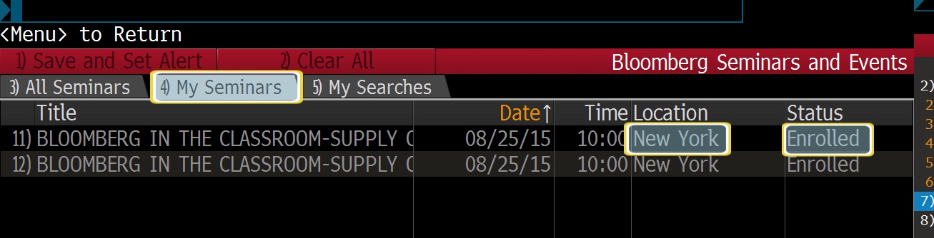 Once you login the terminal, type <BU> and in the command line and hit the enter, or <GO> button, to access Bloomberg University. Because Lehman College is located in New York City you can attend any lectures at the Bloomberg offices on 731 Lexington Avenue. Registration is available only through the terminal. You can also sign up for a webinar using the <BU> command.